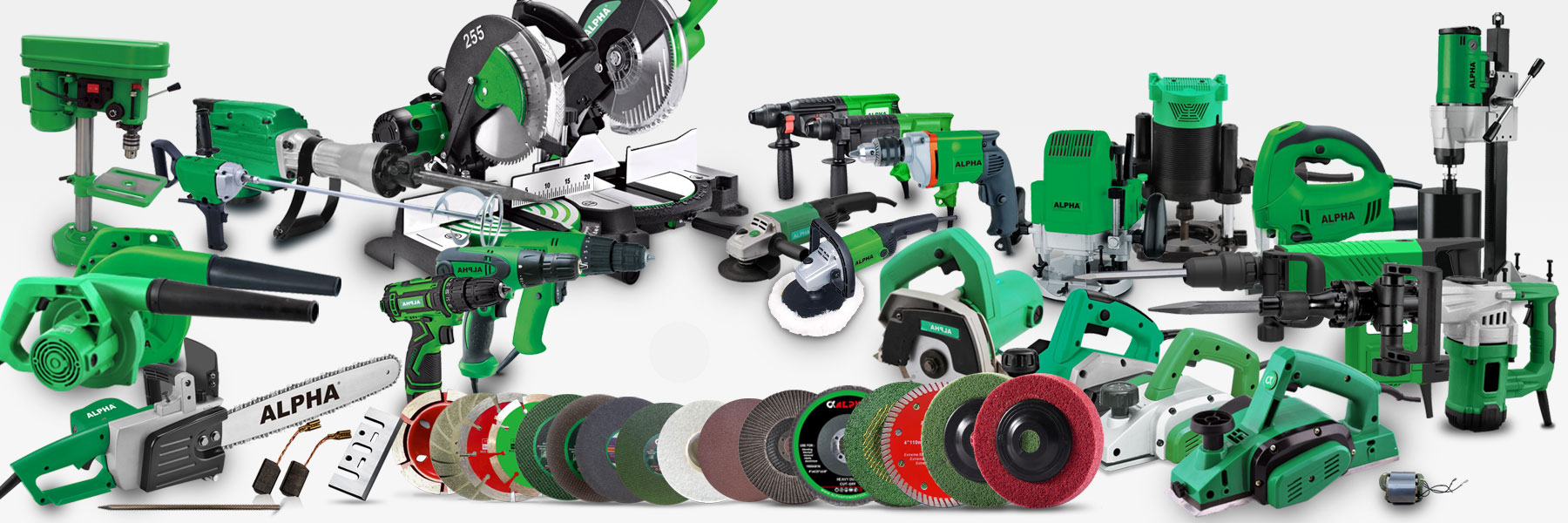 Alpha DIY tools range was introduced with only 6 models about a decade back, expanded now to wide variety of products covering all power tools applications with complete spares back up. Replacement spares such as Armatures, Field Coils, Carbon brush were also introduced in the product range.